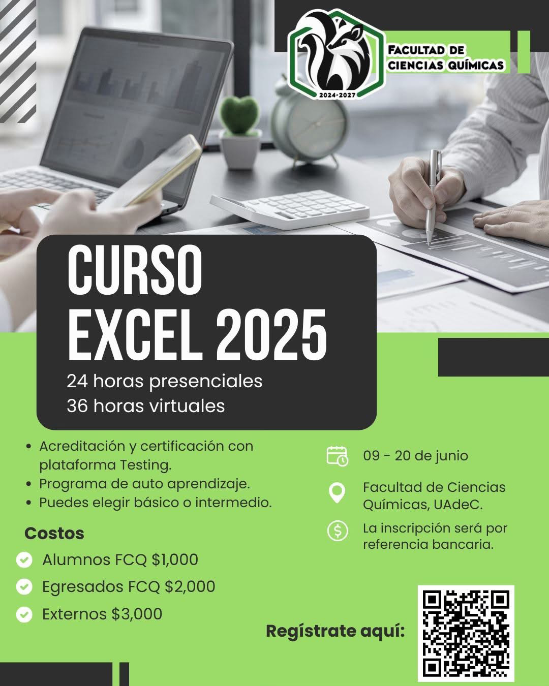 SALTILLO, Coahuila. 29 de mayo de 2025. La Universidad Autónoma de Coahuila a través de la Facultad de Ciencias Químicas Unidad Sureste, invita a la comunidaduniversitaria, egresados y público en general al Curso Excel 2025, que se llevará cabo del 9 al 20 de junio.