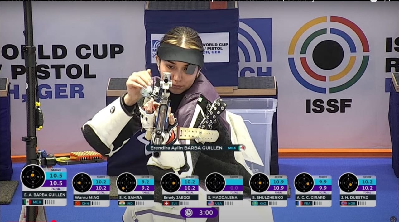 Saltillo, Coahuila de Zaragoza; a 12 de junio de 2025.- La tiradora coahuilense Eréndira Barba Guillén impuso nuevo récord nacional en el rifle de tres posiciones femenil, luego de clasificarse a la final de la Copa del Mundo ISSF de tiro que se celebró en Múnich, Alemania.