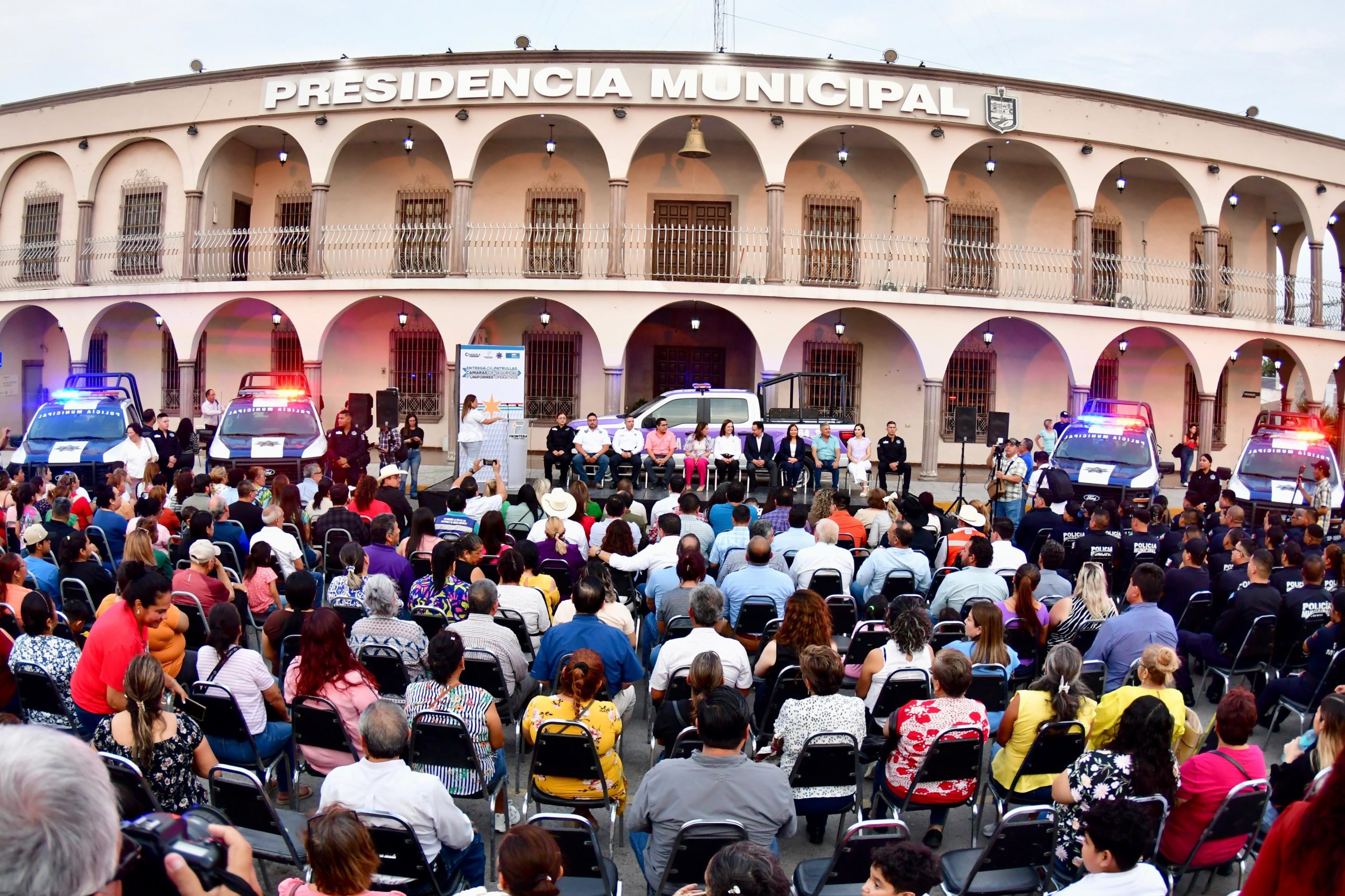 Durante la ceremonia se entregaron de manera simbólica 4 patrullas de Seguridad Pública, 1 patrulla destinada a la Policía Violeta, 122 paquetes de uniformes operativos, y un conjunto de equipos tecnológicos de video vigilancia, que incluye una traila con cámaras móviles, estaciones de pánico y cámaras fijas colocadas en puntos estratégicos de la ciudad.