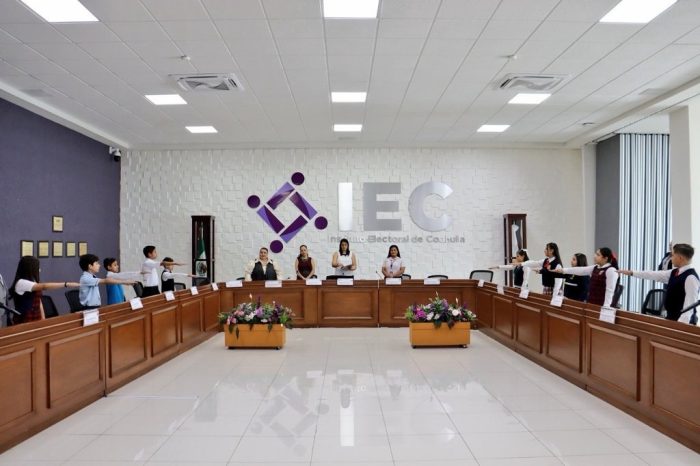 El acto tuvo lugar dentro de la Sesión de Instalación presidida por las Consejeras Electorales Layla Karina Miranda Girón, Leticia Bravo Ostos y Patricia Guadalupe González Mijares, Presidenta e integrantes de la Comisión de Educación Cívica del Instituto Electoral de Coahuila (IEC), respectivamente; así como de la Secretaria Técnica Rosa Alicia Leija Hernández.